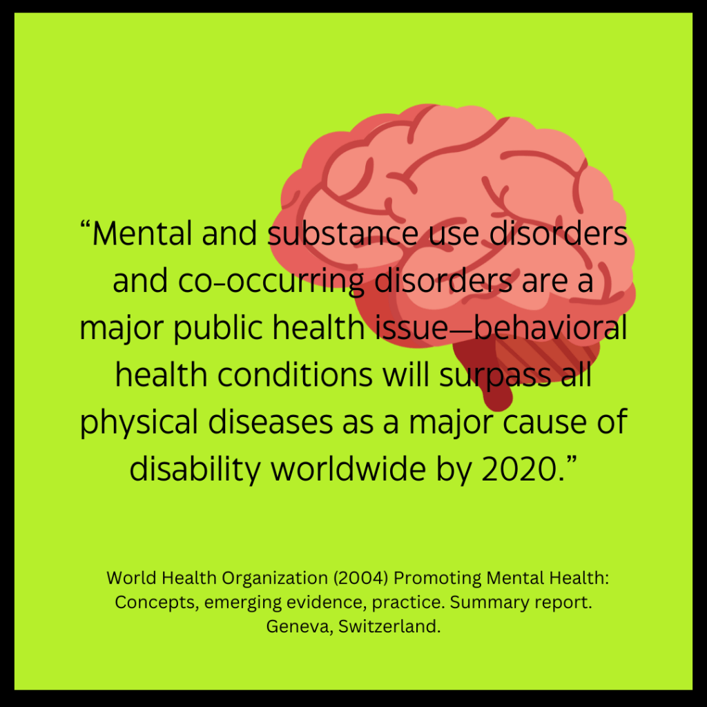 In 2004, the World Health Organization predicted that, by 2020, the leading cause for disability worldwide wouldn’t be due to physical diseases, but behavioral health conditions (mental and substance use disorders).[1]
